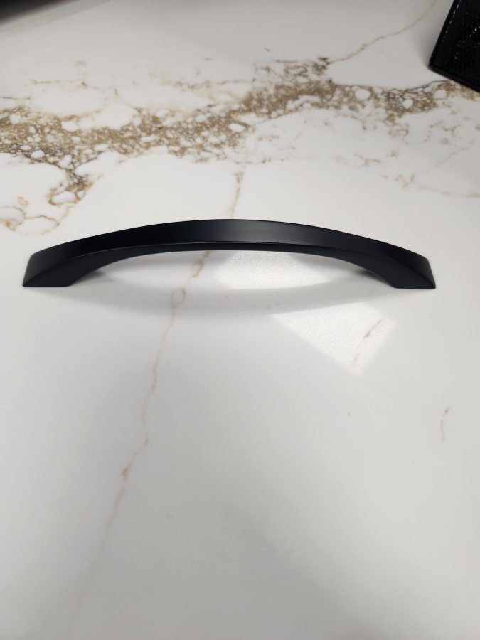 A playful flare and soft lines of Philip's pull creates excitement and a bit of romance. This Jeffrey Alexander 7-9/16" overall length Matte Black pull is offered in two additional standard pull lengths and a matching flared cabinet knob for a lively design option. Seven top trending finishes, including Brushed Gold, and Satin Bronze, make this collection a winning choice for any kitchen, bath or closet. Each item is individually wrapped to protect the item from damage. Attachment hardware is included.
