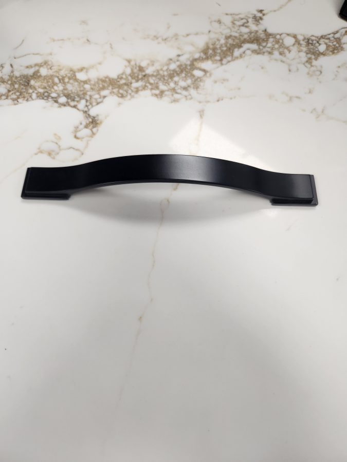 Be adventurous with the bold, yet somehow familiar, Mirada collection from Jeffrey Alexander. This 8-1/16" overall length Matte Black pull boasts a broad, vaulting strap mingled with a controlled rectangular foot, this collection's pull undoubtedly makes a statement. This collection offers two additional pull lengths and matching knob available in six desirable finishes. Each item is individually wrapped to protect the item from damage. Attachment hardware is included.